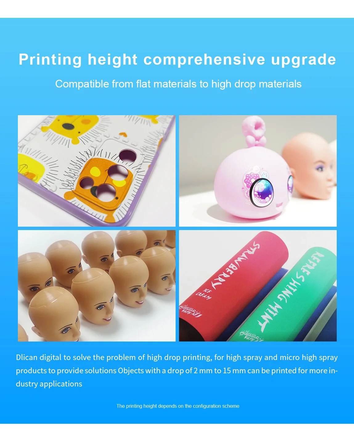 The machine performance is stable and durable, can be printed for full time production DLI-2513 model is widely used in advertising Mobile phone cases, signs and other digital products. Dingli UV UV Flat Printing using Ricoh Industrial sprinkler, printing High precision, fast speed and long life and many other characteristics, perfectly meet the needs of pattern printing in various industries DLI-2513 model is the best choice for the above product pattern printing.