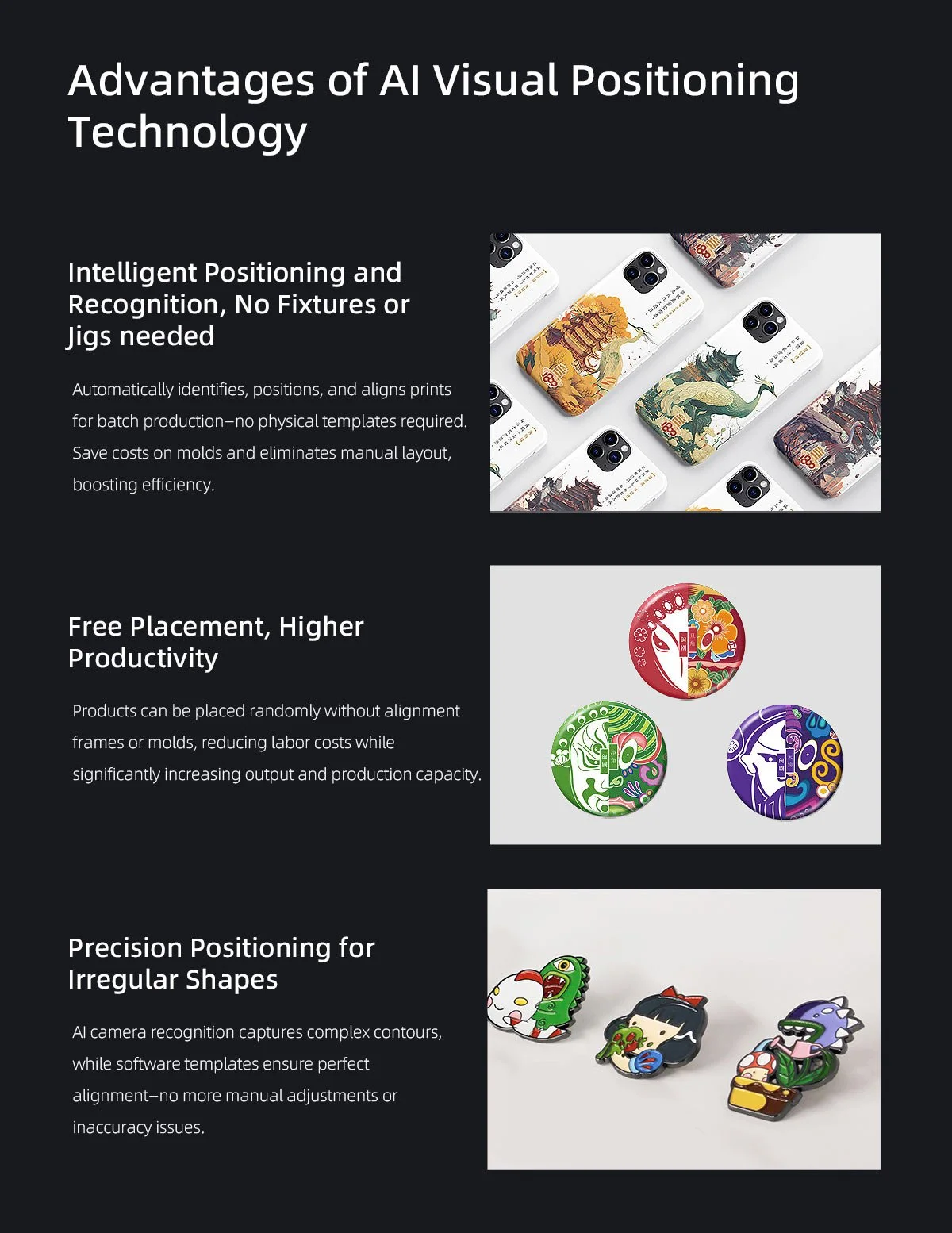 Vision positioning UV printers eliminate the need for printing positioning frames, solving the challenges of positioning various irregularly shaped materials. T···